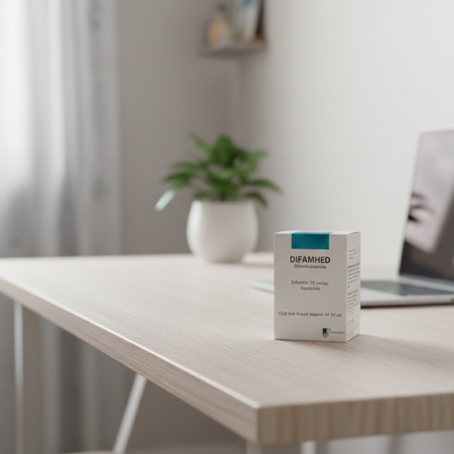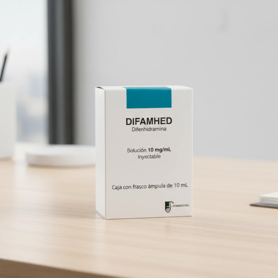 Bienvenidos a la Tienda Oficial de Farmadextrum operada por Halomedic. Nombre del medicamento: DIFAMHED Principio activo: Difenhidramina Dosis unitaria: 10 mg / mL Presentación: Solución inyectable Unidades Totales: Frasco ámpula de 10 mL Difamhed Difenhidramina, es una solución inyectable, para el tratamiento de diversas condiciones respiratorias relacionados con alergias y reacciones adversas. ---------------------------------------------------- Consulte a su médico. Evite la automedicación. Halomedic no recomienda ni sugiere el consumo de ningún medicamento. Lo mostrado en esta página es solamente informativo. + En caso de requerir factura, encontrará un link en el chat de compra para realizarla. + En medicamentos no hay cambios ni devoluciones para garantizar la seguridad del producto.