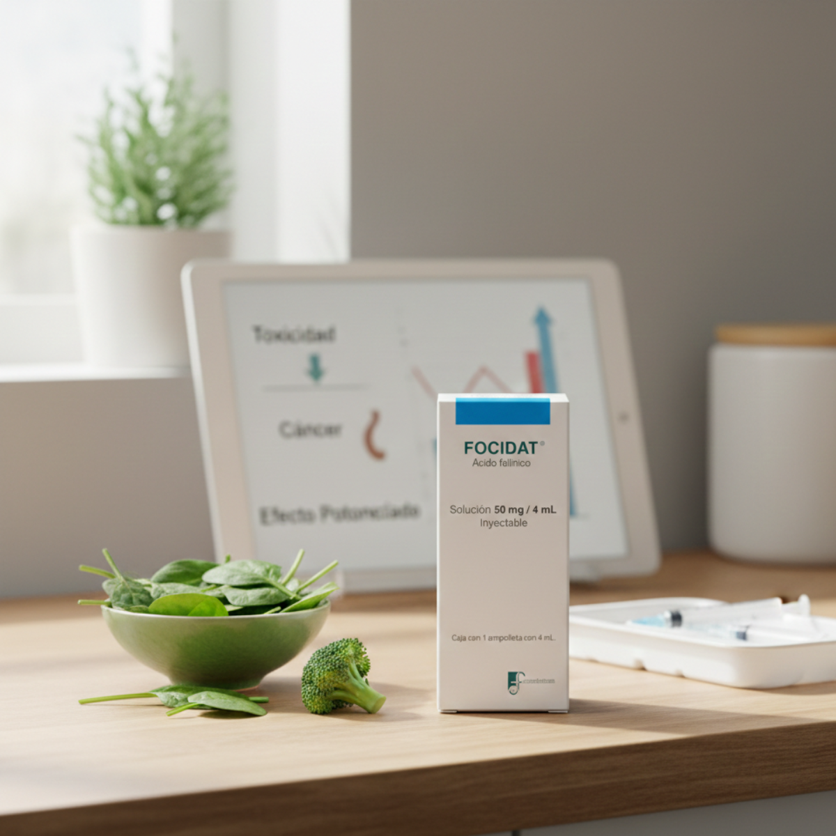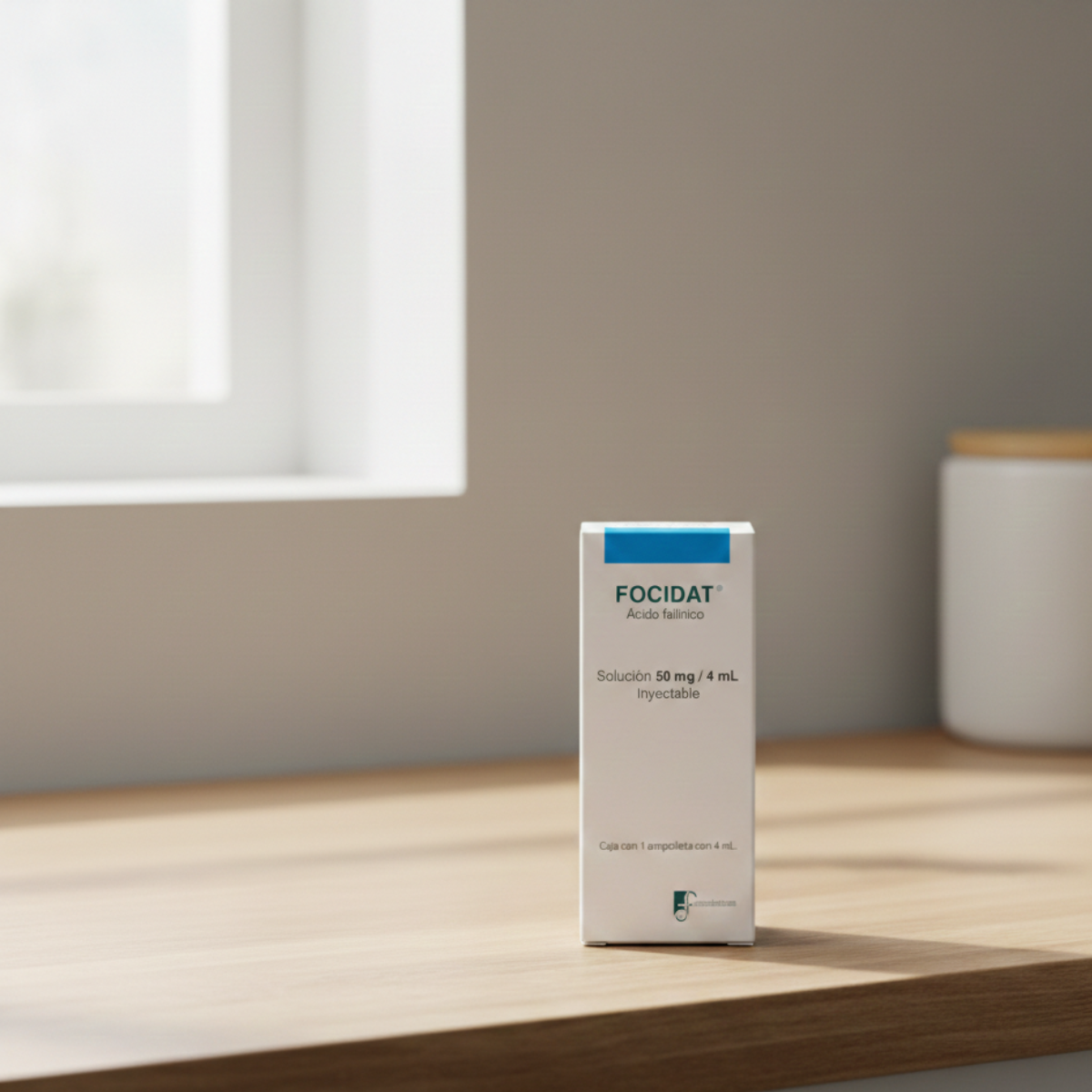 Bienvenidos a la Tienda Oficial de Farmadextrum operada por Halomedic. Nombre del medicamento: FOCIDAT Principio activo: Ácido Folínico Dosis unitaria: 50 mg / 4 mL Presentación: Solución inyectable Unidades Totales: caja con 1 ampolleta * Al recoger el producto es importante traer hielera o bolsa de refrigeración. ---------------------------------------------------- Consulte a su médico. Evite la automedicación. Halomedic no recomienda ni sugiere el consumo de ningún medicamento. Lo mostrado en esta página es solamente informativo. + En caso de requerir factura, encontrará un link en el chat de compra para realizarla. + En medicamentos no hay cambios ni devoluciones para garantizar la seguridad del producto.